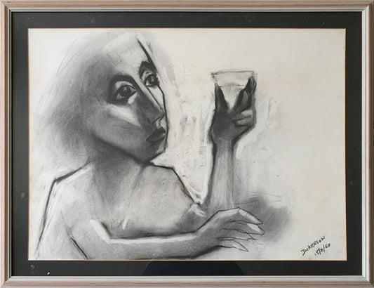 Robert Dickerson (1924-2015) Large Original Charcoal Drawing 'The Toast' 55cm x 75cm