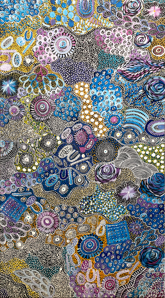 Janet Golder Kngwarreye (b.1973) XLarge Original Acrylic on Canvas 'Bush Tucker – My Country' 198cm x 104.5cm