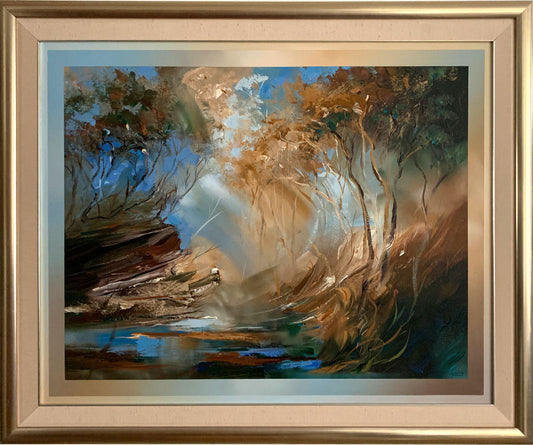 David Voigt (Australian, b. 1944) Original Painting on Canvas 'High Banks at Smoky Creek' 80cm x 110.5cm