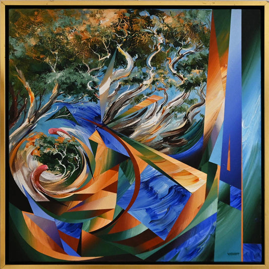 David Voigt (Australian, b. 1944) Original Painting on Canvas 'Nesting Elements' 50cm x 50cm