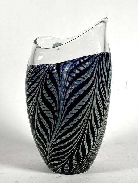 David Lotton (USA) - Signed Original Glass Vase with Fern Decoration - 25.5cm