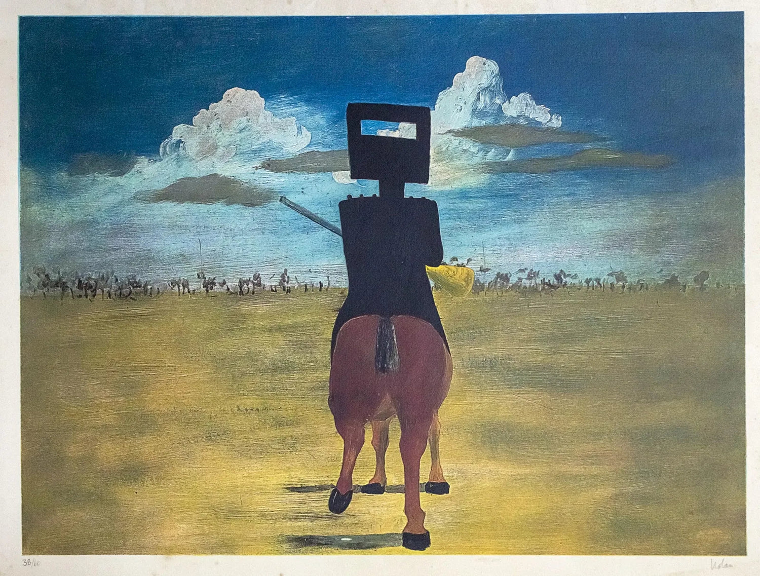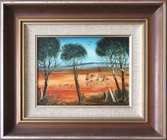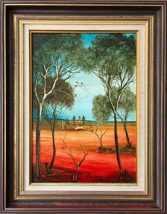Pro Hart (1928-2006) - Large Original Oil Painting 'Figures in a Landscape' 44cm x 30cm