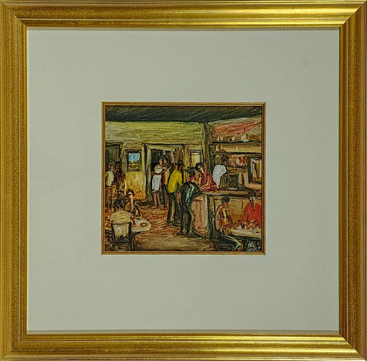 Pro Hart (1928-2006) - Large Original Oil Painting On Board 'Bar' - 24cm x 26cm