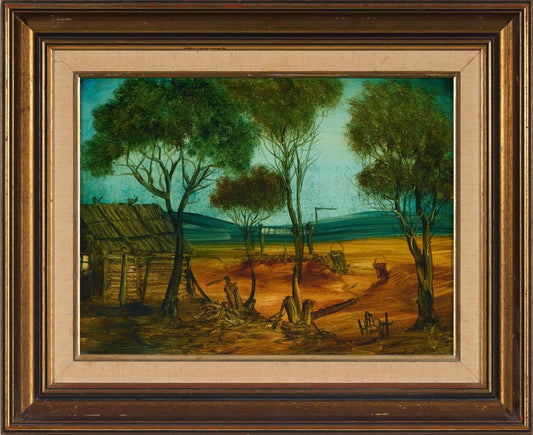 Pro Hart (1928-2006) - Large Original Oil Painting On Board 'Hut Study" 24cm x 34cm