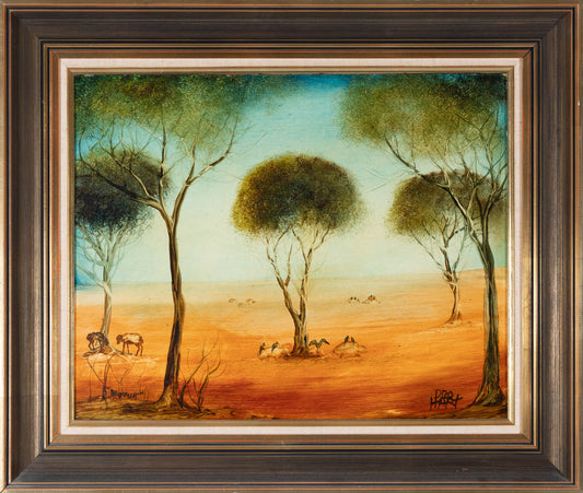 Pro Hart (1928-2006) - Large Original Oil on Board "Drought" 40cm x 50cm