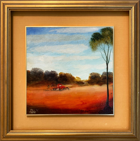 Pro Hart (1928-2006) - Original Oil on Board "Outback Landscape" - 29cm x 29cm