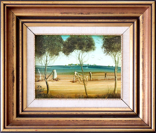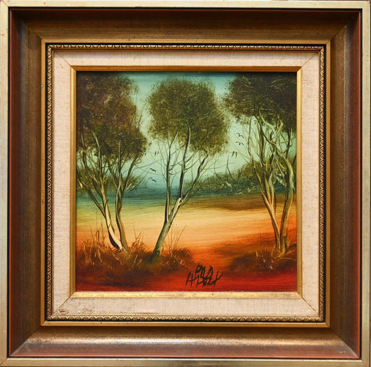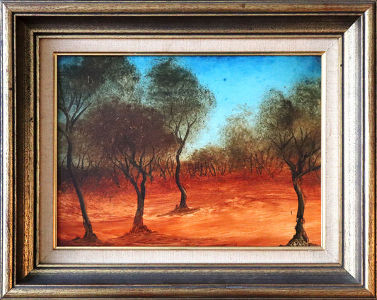 Pro Hart (1928-2006) - Original Oil on Board "Landscape With Two Trees" - 21cm x 29cm