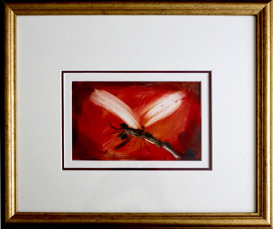 Pro Hart (1928-2006) - Original Oil Painting On Board 'Dragonfly' 14cm x 22cm