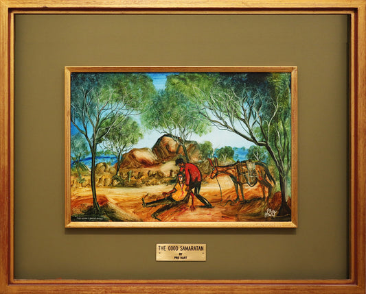 Pro Hart (1928-2006) - Large Original Oil Painting On Board 'The Good Samaritan' - 30cm x 44cm