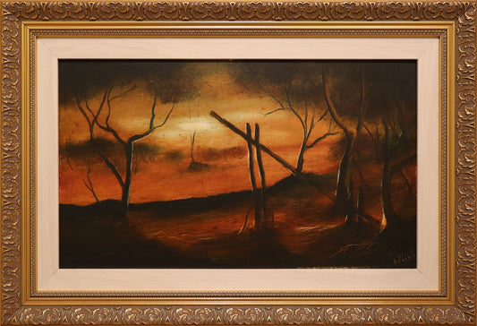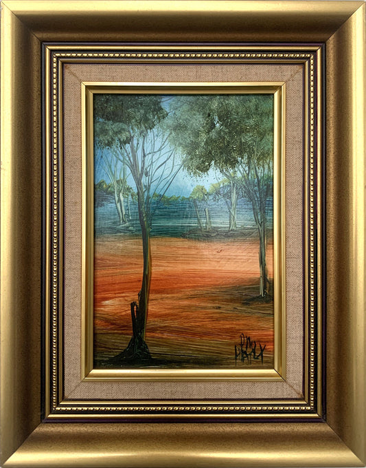 Pro Hart (1928-2006) - Original Oil Painting On Board 'Landscape With Trees" 21cm x 13cm