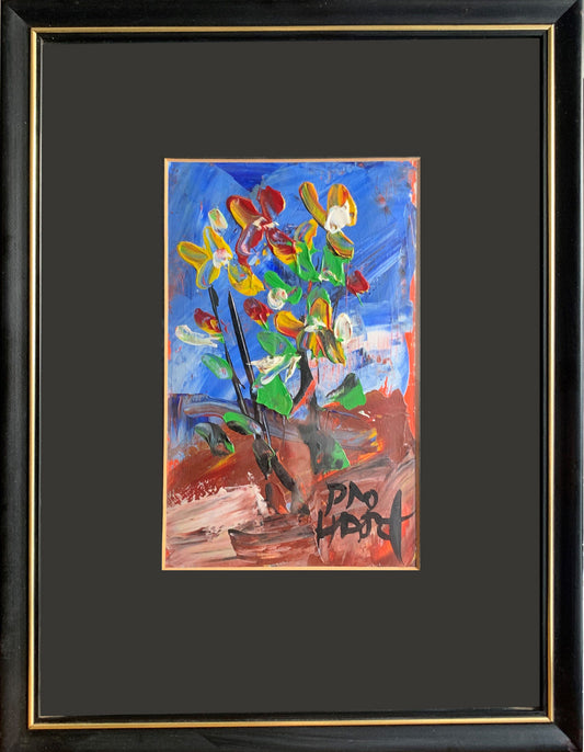 Pro Hart (1928-2006) - Original Oil Painting On Board 'Flowers' - 18cm x 11cm