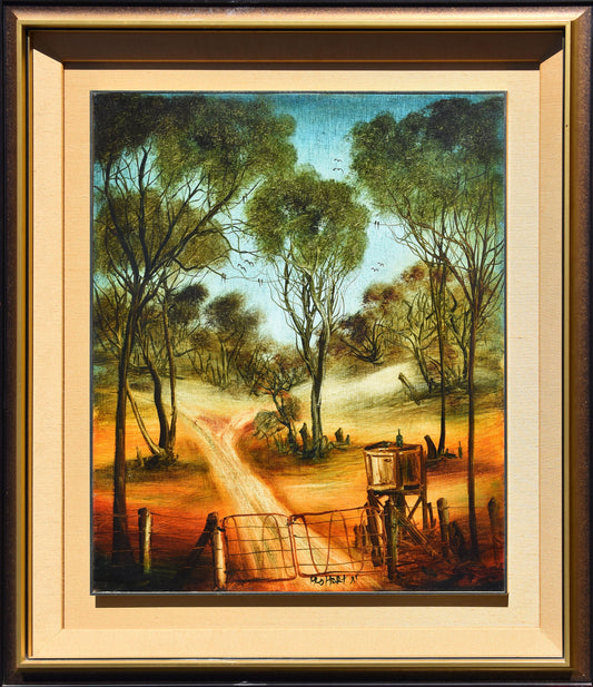 Pro Hart (1928-2006) - XLarge Original Oil Painting 'The Farm Gate' 60cm x 50cm