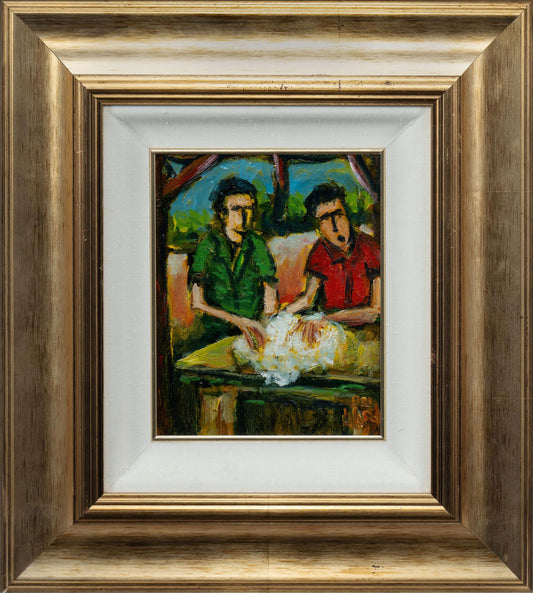 Pro Hart (1928-2006) - Original Oil Painting On Board 'Wool Classers' - 20cm x 16cm