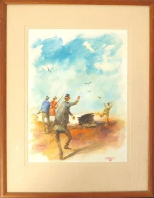 Hugh Sawrey (1919-1999) Original Oil on Canvas 'Catching the Nags' 29cm x 34cm