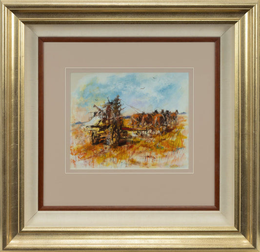 Hugh Sawrey (1919-1999) Large Original Oil Painting 'Brosnan's Plough Team' 55cm x 70cm