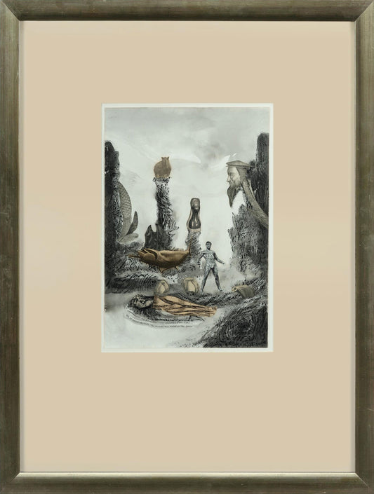James Gleeson (1915-2008) Original Ink, Collage and Wash Artwork on Paper 42cm x 29cm
