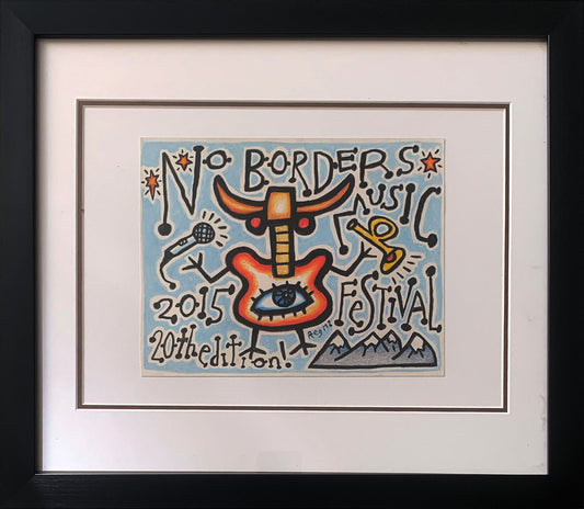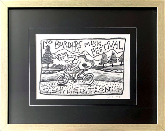 Reg Mombassa (1951-) Original Charcoal and Pencil On Paper 'No Border Music Festival' 17.5cm x 24cm