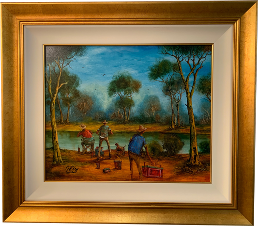 John Cobby (b.1957) Huge Original Oil on Board 'Bush Reunion' 54cm x 82cm