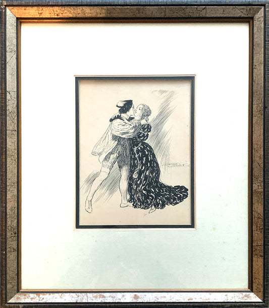 Norman Lindsay (1879-1969) - Original Signed Ink Drawing 'Love - The Kiss' 20.5cm x 15cm