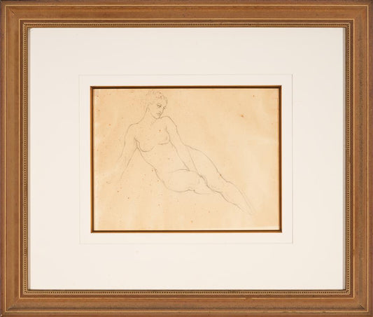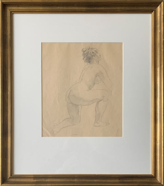 Norman Lindsay (1879-1969) - Large Original Signed Pencil Drawing 'Kneeling Nude' 32cm x 27.5cm