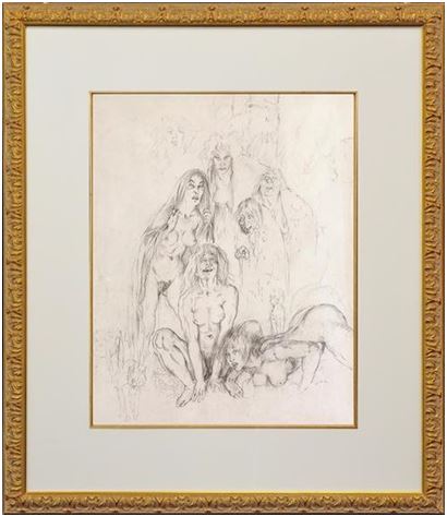 Norman Lindsay (1879-1969) - Large Original Signed Pencil Drawing 'All Hallows Night' 58cm x 44.5cm