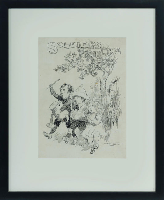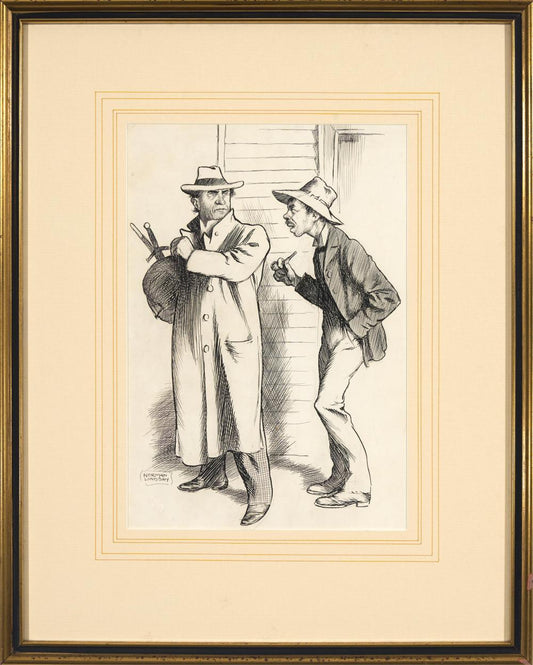 Norman Lindsay (1879-1969) Original Signed Ink Drawing 'Soldiers Three' 26cm x 19cm