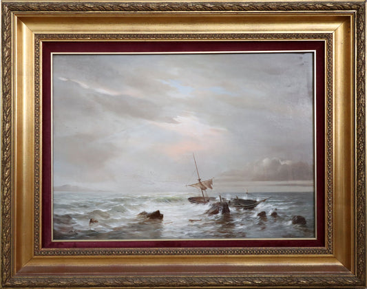 Jos (Jozef) Kivitz (b.1945) XLarge Original Oil Painting on Board 'Shipwreck Against the Rocks" 49cm x 69cm