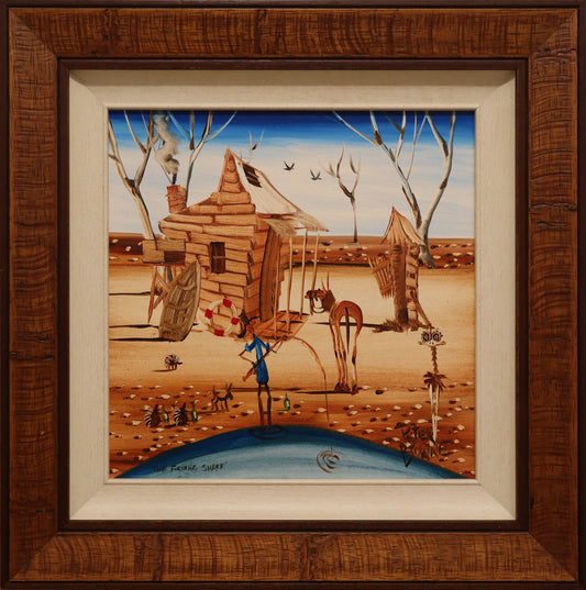 Peter Browne (1947-) Original Oil Painting on Board ' The Fishing Shack' 28.5cm x 28.5cm