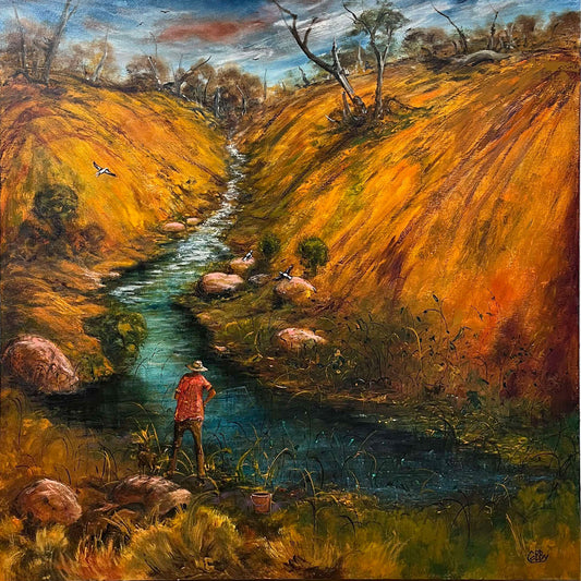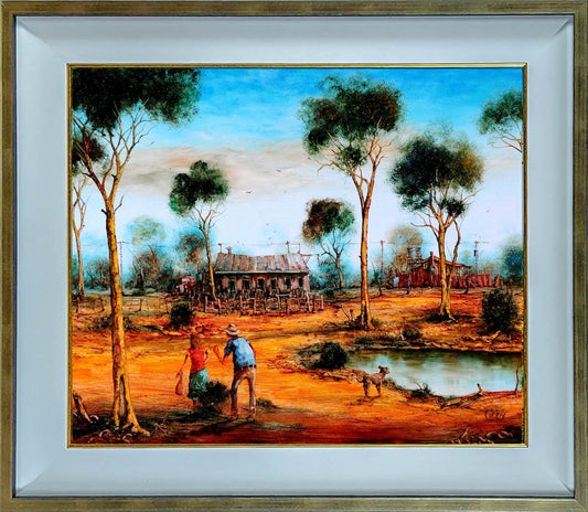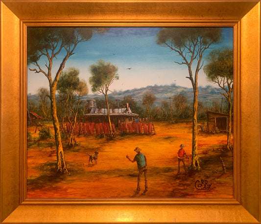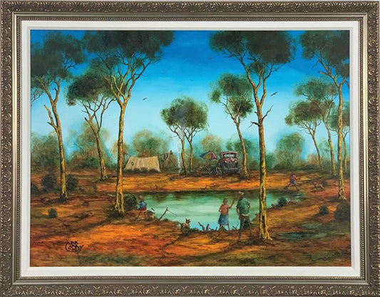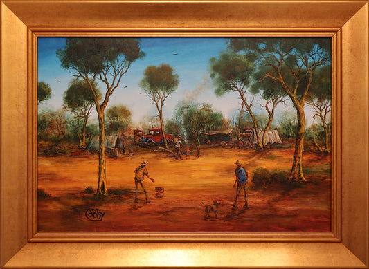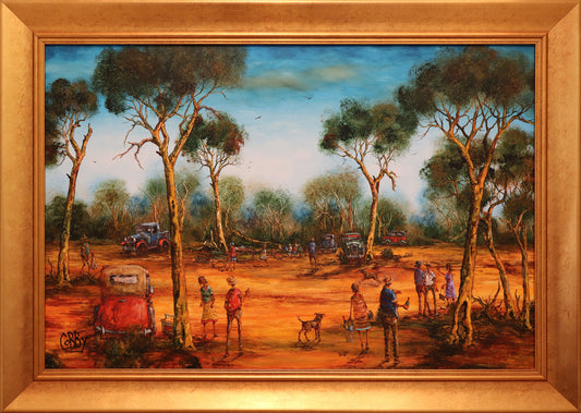 John Cobby (b.1957) Huge Original Oil on Board 'Bush Reunion' 54cm x 82cm