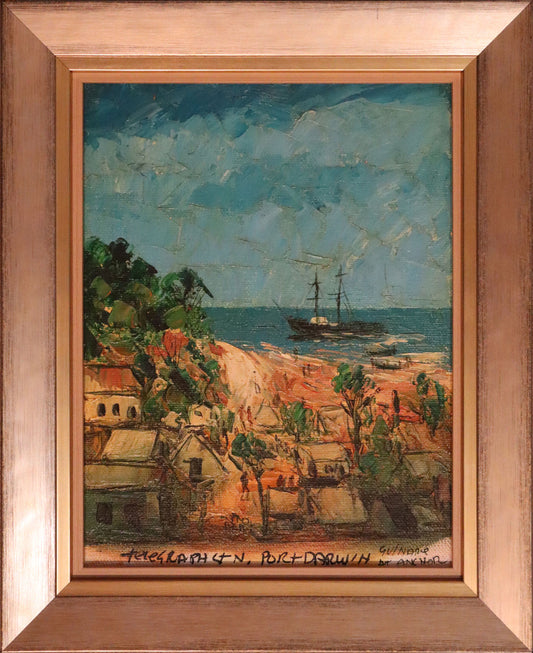 Pro Hart (1928-2006) - Large Original Oil Painting On Board 'Gulnare, Port Darwin' - 33cm x 25cm
