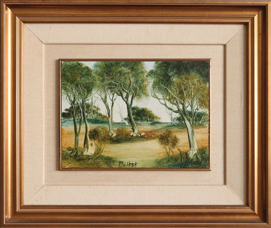 Pro Hart (1928-2006) - Original Oil Painting On Board 'Bush Landscape' - 18.5cm x 25.5cm