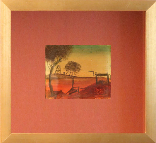 Pro Hart (1928-2006) - Original Oil Painting On Board 'Mining Scene' 10cm x 8cm