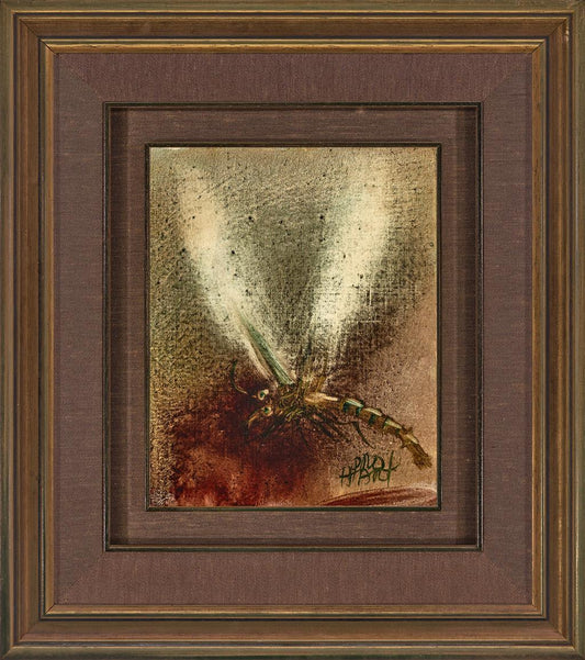 Pro Hart (1928-2006) - Original Oil Painting On Board 'Insect' - 24m x 19cm