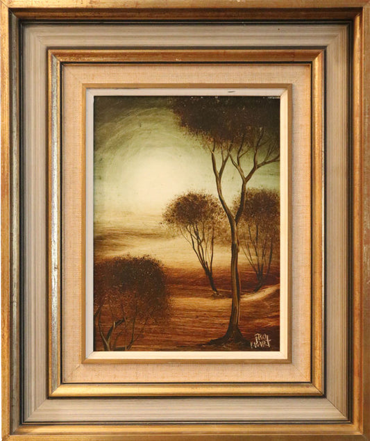 Pro Hart (1928-2006) - Original Oil Painting On Board with COA 'Bush Landscape' 29.5cm x 22cm