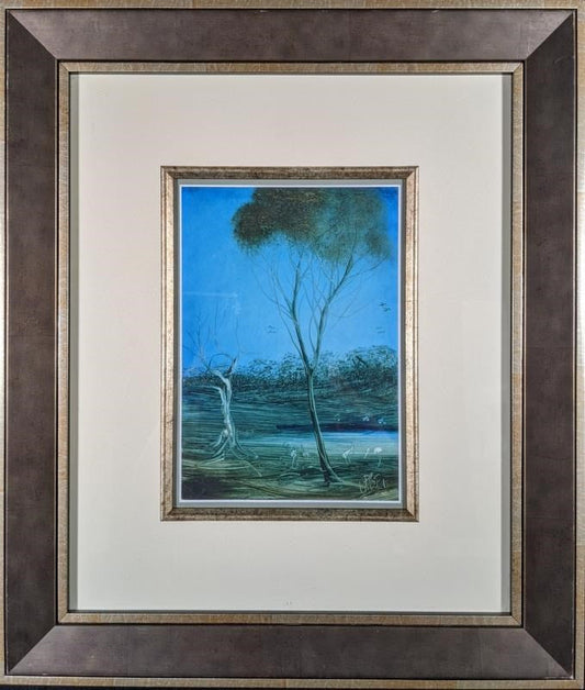 Pro Hart - Original Oil Painting - Blue Swamp - 25cm x 17cm