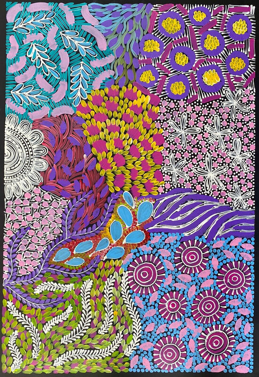 Gracie Morton Pwerle (b.1956) Australian Aboriginal Art Bush Plum Dreaming 97cm x 51.5cm