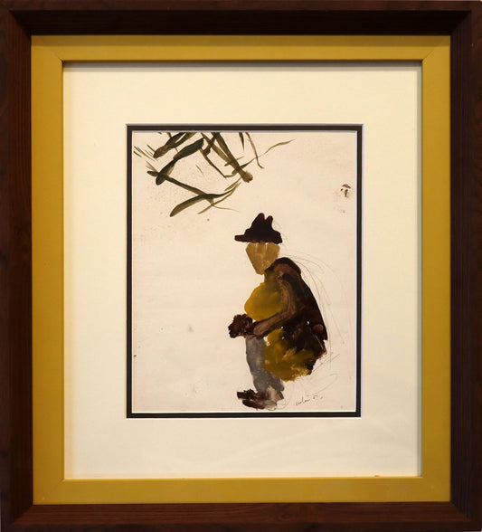 Sidney Nolan (1917-1992) Original Mixed Media Painting 'Seated Man' 25.5cm x 20cm