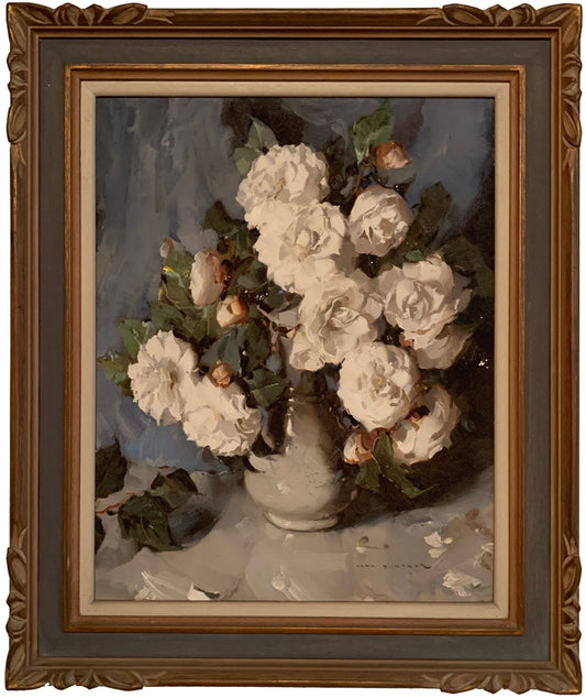 Alan Douglas Baker (1914-1987) Large Original Oil on Board 'White Camelias' 49.5cm x 39.5cm
