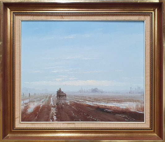 Pro Hart (1928-2006) - Large Original Oil Painting On Board 'The Woolpresser' 29.5cm x 29.5cm