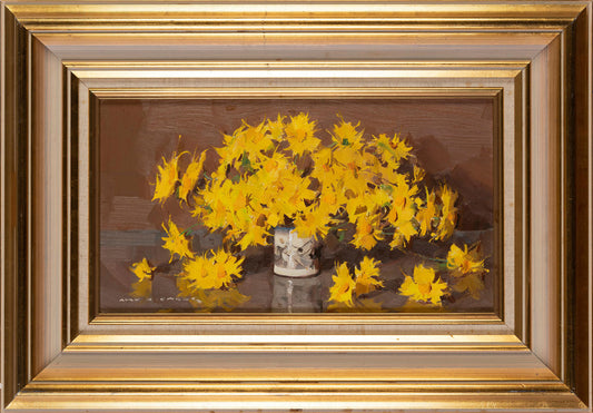 Alan Douglas Baker (1914-1987) Large Original Oil on Board 'Daisies' 19cm x 34.5cm