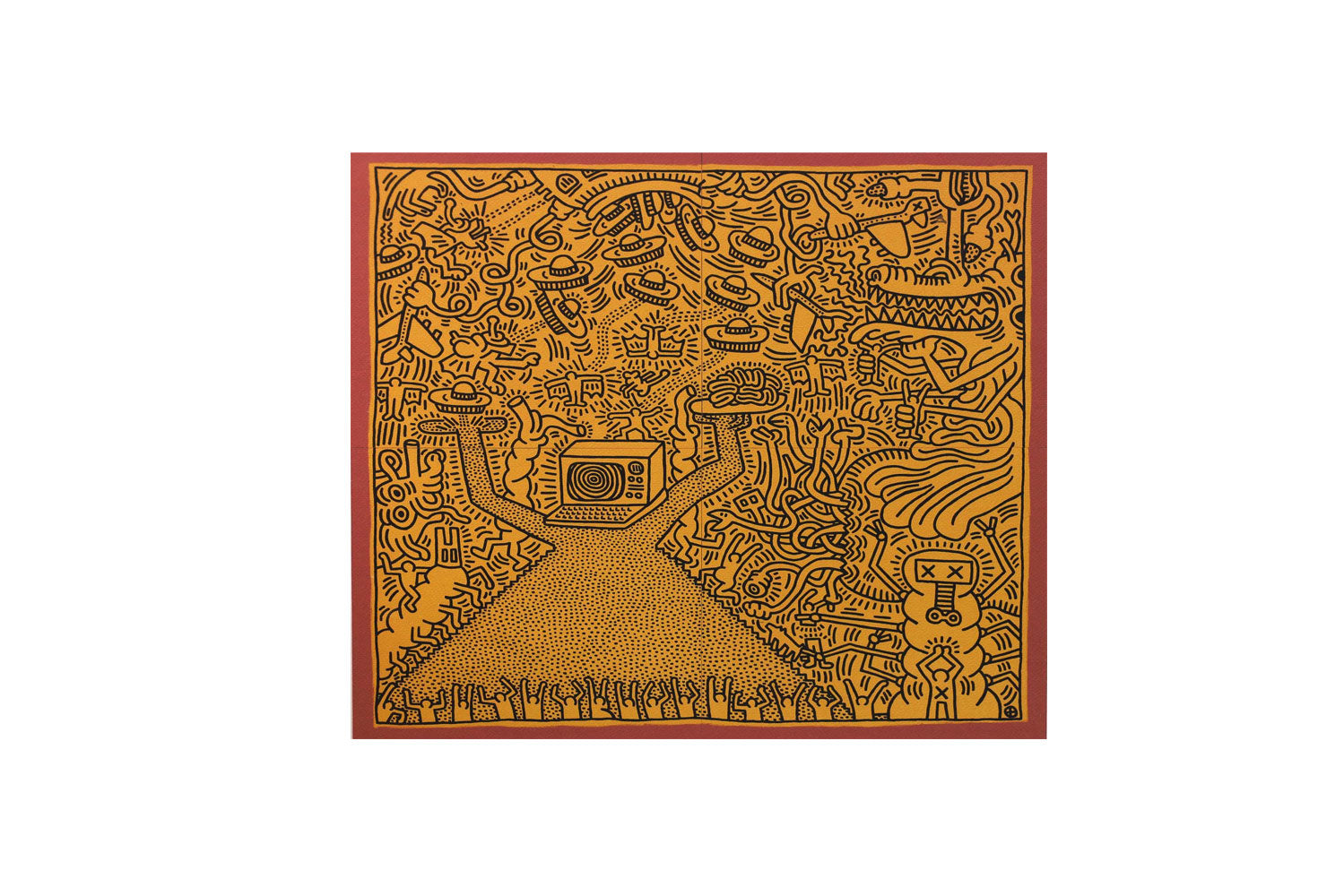 Diagnosed with HIV/AIDS in 1988, Haring’s prodigious career was brief, and he died of AIDS-related complications on February 16, 1990 at the age of 31. Before his death, Haring established the Keith Haring Foundation, a non-profit committed to raising awareness of the illness through art programing and community outreach. Throughout his career, Haring made his art widely available through the location of his murals, as well as through the Pop Shop—Haring's own storefront which he used to sell his memorabilia.The artist’s mural Crack is Wack (1986), can still be seen today on a retaining wall along FDR Drive in Manhattan. Haring’s works can be found in the collections of The Museum of Modern Art in New York, the Los Angeles County Museum of Art, the Art Institute of Chicago, and the Smithsonian American Art Museum in Washington, D.C.